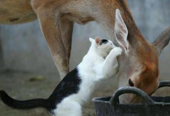 小鹿吃饱了,甩甩尾巴,昂着头走了,留下一脸懵的猫咪。猫咪低头看看空荡荡的篮子,又抬头望望远去的小鹿,估计心里在嘀咕:“这也太欺负猫了吧!”它那无辜的小眼神,简直让人心疼。